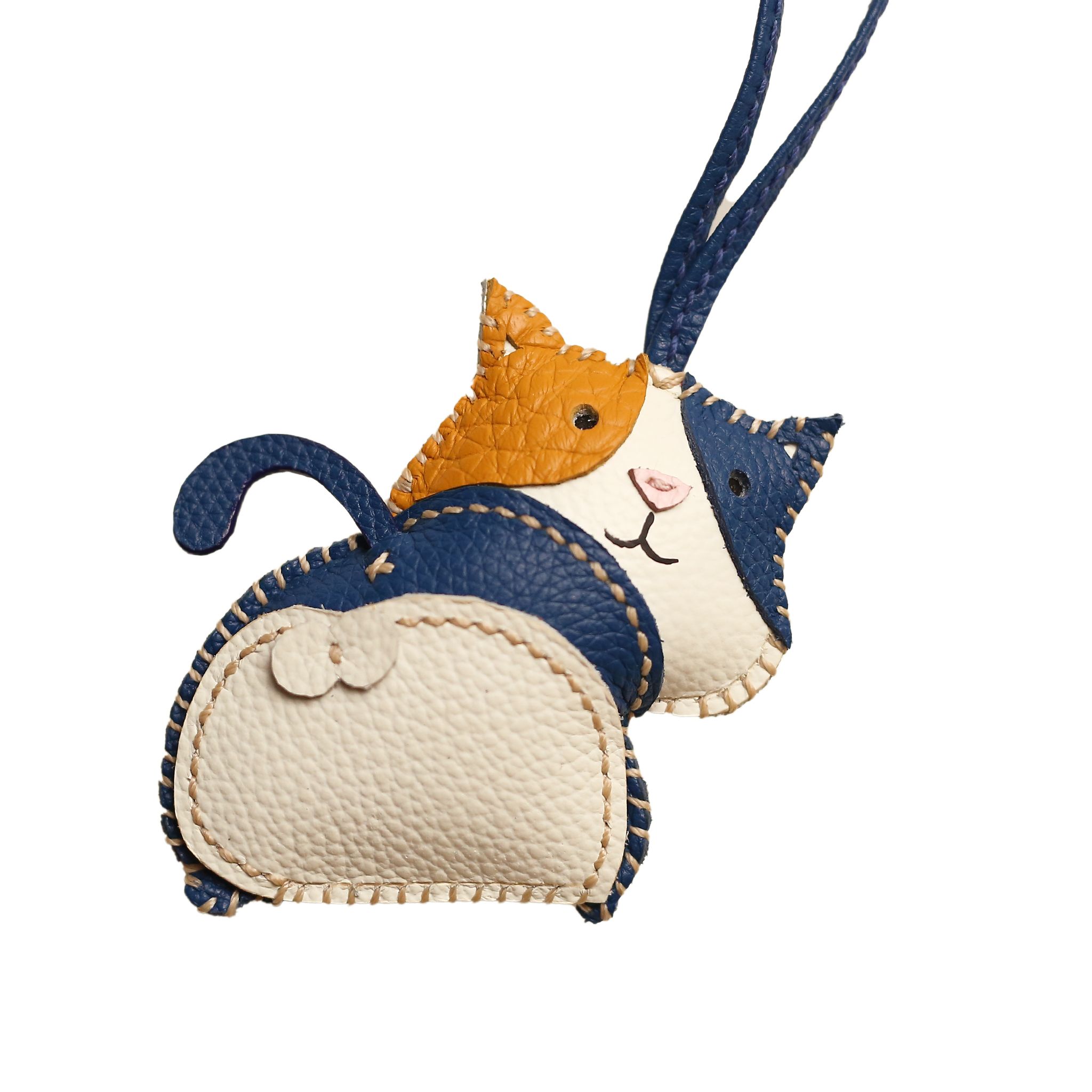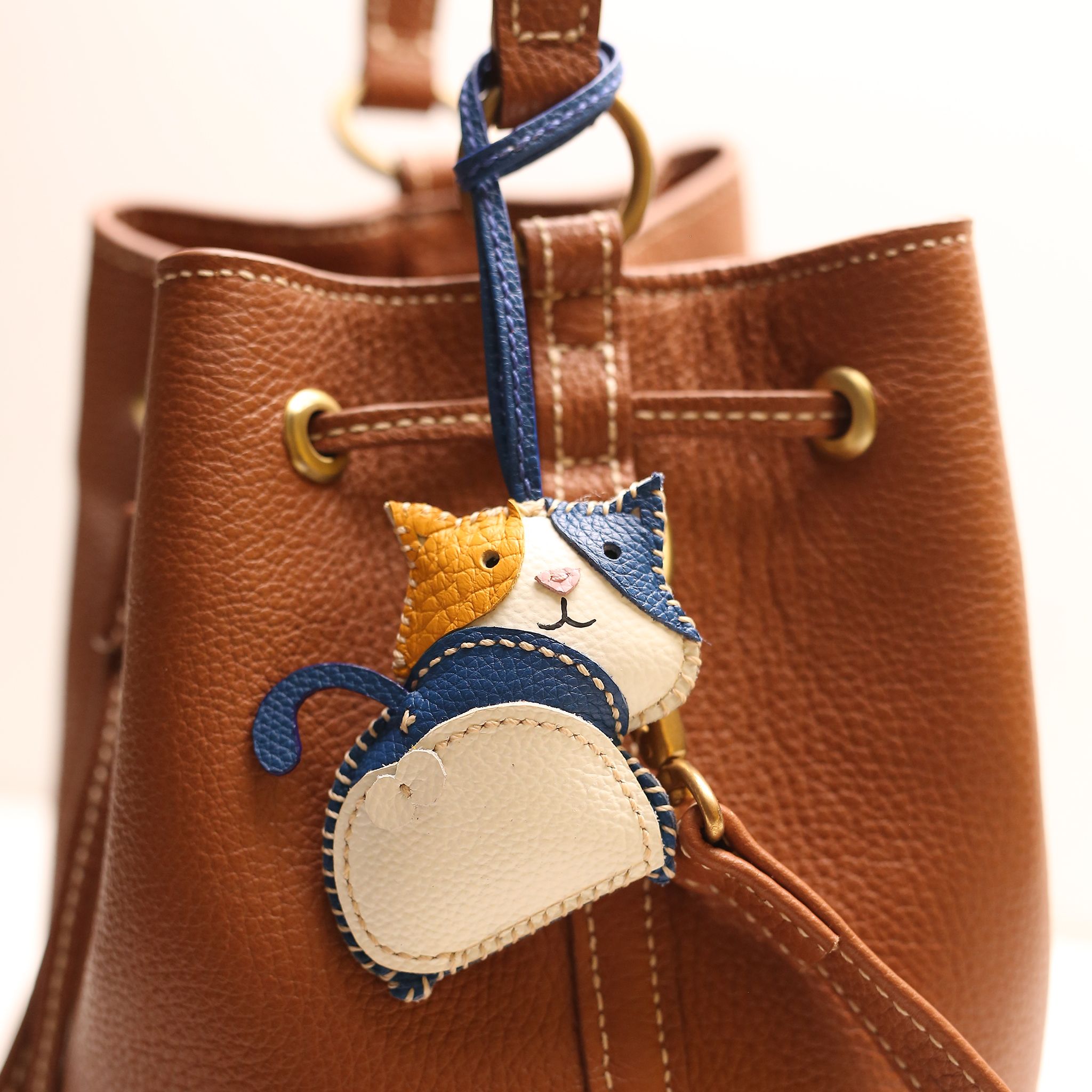 Charm đeo túi xách với tạo hình mèo béo ngộ nghĩnh và hài hước, được chế tác hoàn toàn thủ công bởi thợ da thủ công lành nghề của RMX Handmade Leather.