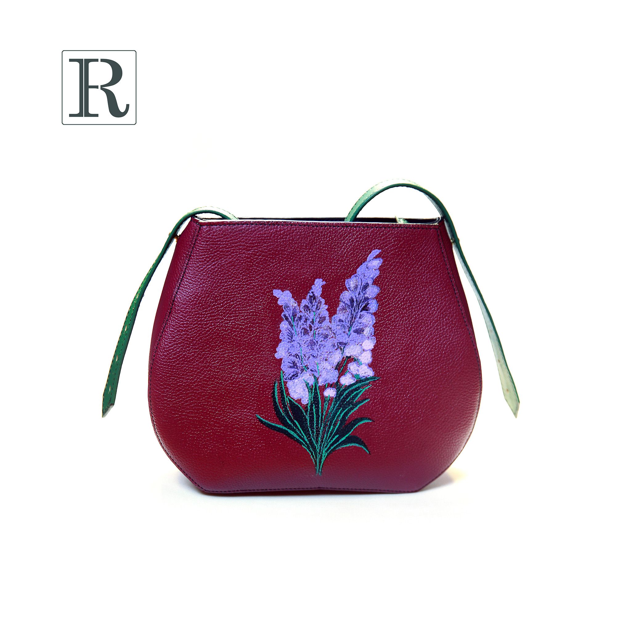 Túi xách chế tác thủ công với họa tiết hoa Lavender vẽ tay bằng chất liệu sơn acrylic, bền với mọi thời tiết.