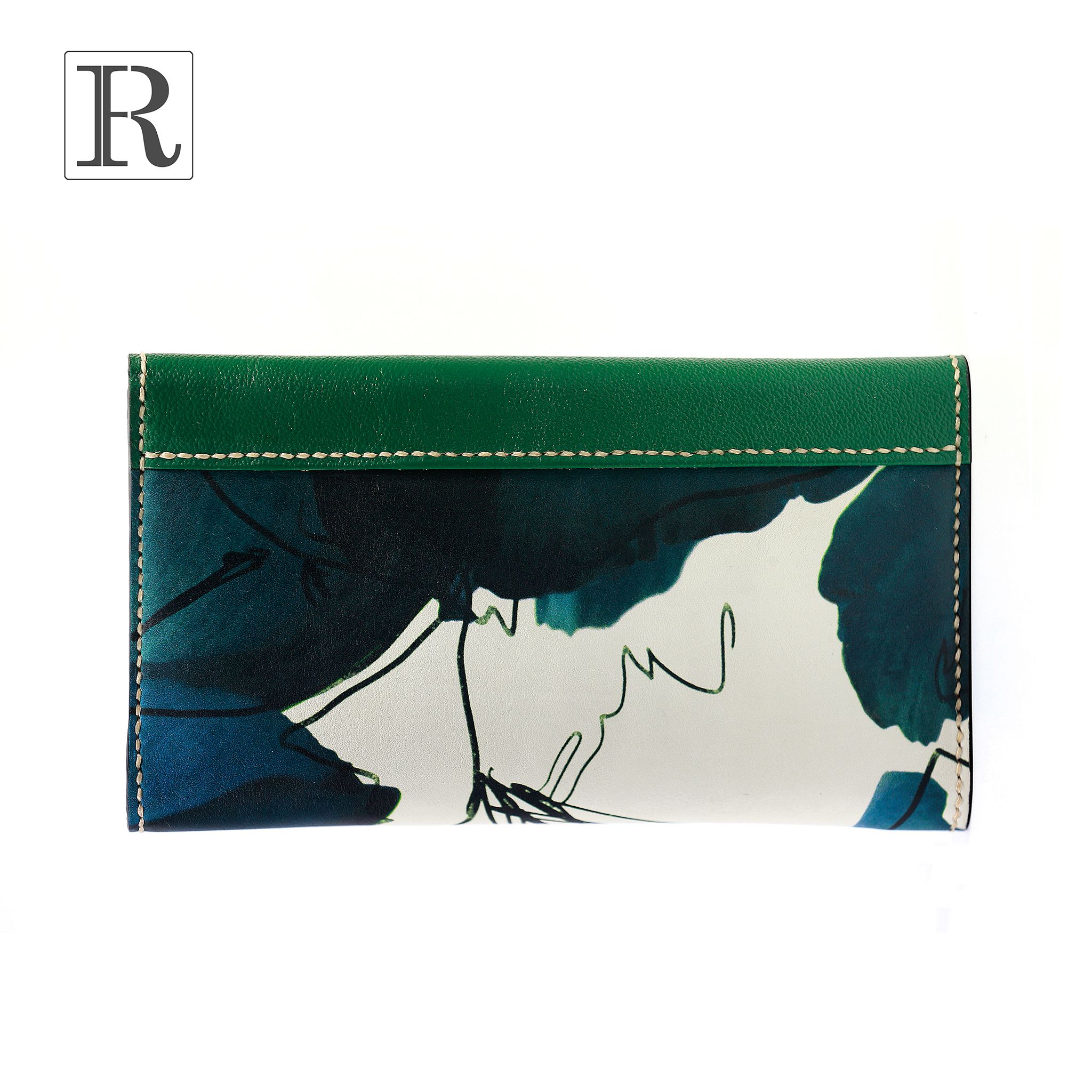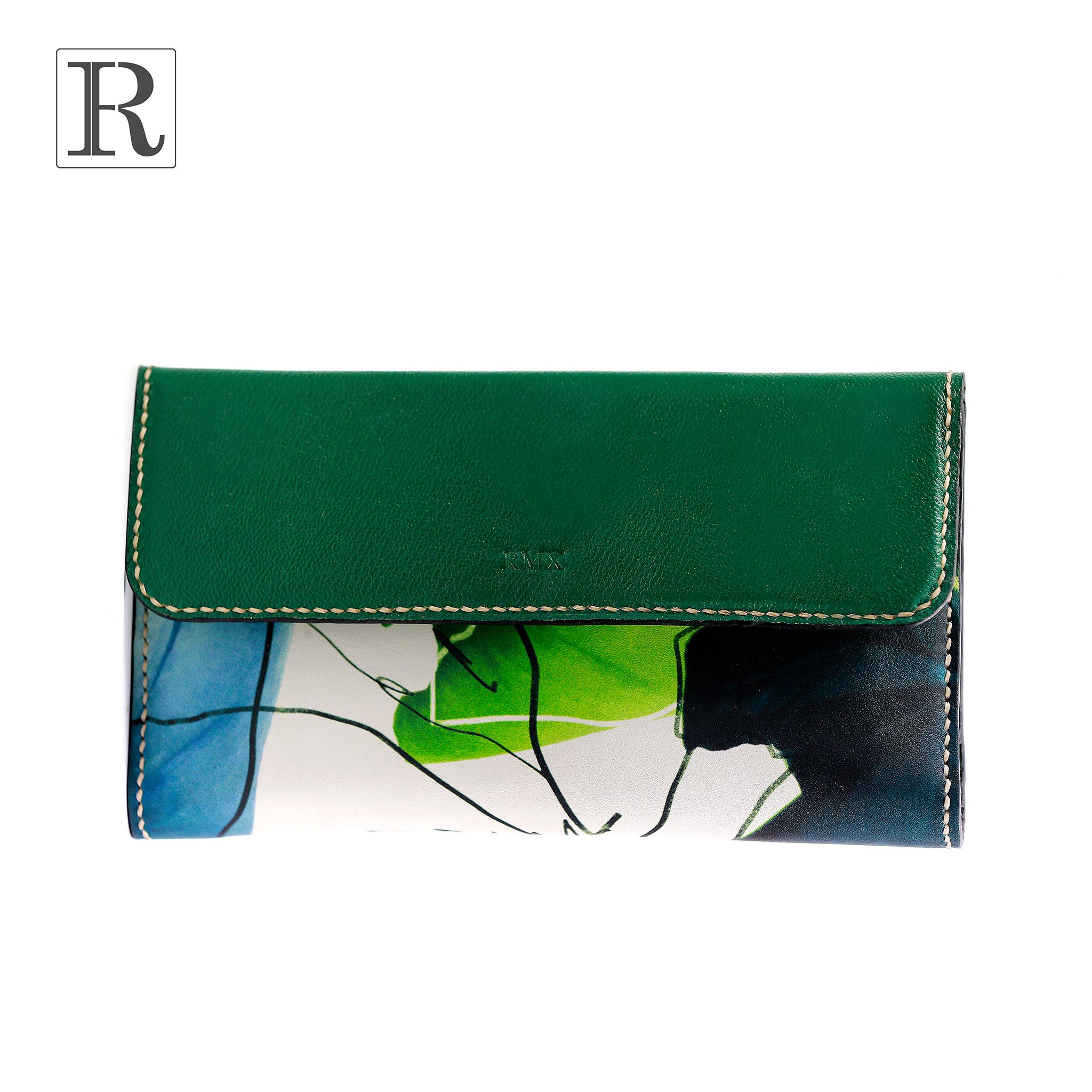 Ví nữ dáng dài với thiết kế nắp gập và cúc nam châm. Thân ví sử dụng da in lá phối màu chuyển tông vô cùng bắt mắt.